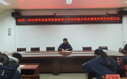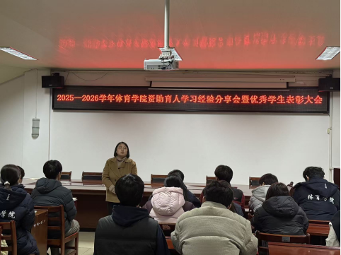 为深入落实资助育人工作要求,充分发挥先进典型的示范引领作用,搭建互助共进的学习交流平台,近日,体育学院在体育楼会议室召开2025—2026学年资助育人学习经验分享会暨优秀学生表彰大会。学院党委副书记艾娜、辅导员葛梦飞及全体获奖学生、各年级学生代表参加此次大会。表彰环节中,副书记艾娜、辅导员葛梦飞先后为获得学校奖学金、国家励志奖学金、“三好学生”及“优秀班干部”荣誉称号的学生逐一颁发奖状与荣誉证书。舞台上,获奖学子身着整洁校服,精神抖擞地接过荣誉证书,脸上洋溢着自豪与喜悦;台下掌声此起彼伏,充分展现出体院学子崇尚优秀、争当先进的浓厚氛围。这份沉甸甸的荣誉,不仅是对获奖学生过去一学年勤学善思、笃行不怠的高度肯定,更是对全体体院学子深耕学业、奋勇争先的有力激励。 经验分享环节精彩纷呈,四位优秀学生代表结合自身成长经历,分享了在学习、实践与个人成长中的心得感悟。来自运动训练专业的国家励志奖学金获得者李同学,详细分享了自己平衡专业训练与文化课学习的秘诀,从制定科学作息计划、组建学习小组互助学习,到利用碎片化时间巩固知识点,干货满满的分享让在场同学深受启发;“优秀班干部”王同学则聚焦班级管理经验,讲述了自己如何协调班级事务、凝聚班级向心力,带领班级斩获“优良学风班”称号的奋斗历程;两位“三好学生”代表还分别结合志愿服务、学科竞赛经历,分享了在实践中锤炼本领、在协作中提升自我的成长收获。分享尾声,学子们纷纷向辛勤培育自己的老师和并肩前行的同学表达真挚感谢,并发出倡议,号召全体同学以梦为马、不负韶华,在青春的赛道上勇毅前行。 大会最后,艾娜副书记作总结讲话。她首先代表学院向全体获奖学子表示热烈祝贺,高度肯定了大家在过去一学年里在学业、实践、服务等方面取得的优异成绩,赞扬了体院学子拼搏进取、勇于担当的青春风貌。同时,她向全体同学提出殷切寄语:一要树立远大理想,将个人成长与国家发展、体育事业进步紧密结合,找准奋斗方向;二要锤炼过硬本领,既要扎实掌握专业知识与技能,也要积极参与实践锻炼,提升综合素养;三要传承优良学风,主动向优秀看齐,在班级内营造互助共进、比学赶超的良好氛围,在奋斗中绽放青春光彩。此次资助育人学习经验分享会暨优秀学生表彰大会的成功举办,不仅让获奖学生感受到学院的关怀与鼓励,更为全体学子搭建了学习交流的优质平台,进一步强化了资助育人的实效。大会的落幕不是终点,而是新征程的起点。相信全体体院学子将以此次大会为契机,以榜样为镜、向优秀看齐,在勤学苦练中提升自我,在拼搏奋斗中书写青春华章,为体育事业发展注入青春力量。