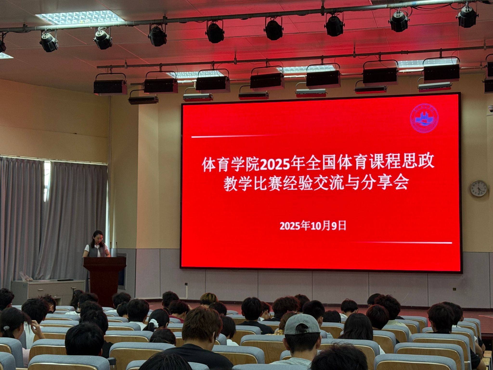 学院举办体育课程思政教学比赛经验分享会 为深化学生对体育课程思政内涵的理解,推动思政元素与体育教学实践的有机融合,我院于2025年10月9日下午在举办了全国体育课程思政教学比赛经验分享会。活动邀请了在比赛中表现优异的2022级学生进行经验交流与实战展示,大一至大三全体学生积极参与,现场学习氛围浓厚。活动由张瑞老师主持。分享会开始,李凤英老师围绕体育课程思政的核心意义与实践价值展开深入解读。她指出,体育不仅是强身健体的途径,更是塑造品格、培养意志的重要载体。李老师通过具体案例,阐明了如何将爱国主义、集体主义、规则意识等思政元素自然融入体育教学,为同学们指明了教学设计与实践的方向。在随后的学生分享环节,参赛的三名学生结合自身参赛经历,从选题立意、教学设计到现场呈现,系统梳理了备赛过程中的关键环节。白硕浩同学提到,“体育课程思政不是生搬硬套,而是要在运动技能传授中自然传递价值理念”,强调教学设计应注重“潜移默化、润物无声”。他的分享既有理论高度,又具实操性,为低年级同学提供了宝贵的借鉴。穆宇娇同学则是在现场进行了体育课程思政教学片段的实战演练。他们以“长征精神”融入耐力跑、将“团队协作”类比国家建设等创新设计,直观展示了体育课堂如何成为激发爱国情怀、担当时代使命的生动舞台。演练过程激情洋溢,充分展现了新时代青年学子将个人成长自觉融入国家发展的精神风貌。为增强学习效果,鲍国旗同学在现场重点分享了如何将爱国主义教育深度融入定向越野课程,他分享了他的获奖教学设计:“我并没有将定向越野简单设计为找点打卡,而是将其打造为一堂‘校园里的红色征程。”他们以具体的体育项目为依托,巧妙融入团结协作、顽强拼搏等思政主题,生动展示了如何通过教学语言、课堂组织与情境设计实现“体育”与“思政”的双向赋能。演练过程节奏紧凑、内容扎实,赢得了在场同学的阵阵掌声。本次经验分享会不仅是一次学习交流,更是一堂创新的爱国主义教育课。通过老师的专业引领、现场的实战观摩与定向这一具体案例,同学们清晰地看到,体育教学是传承红色基因、培育家国情怀的生动载体,对体育课程思政的理解更加深入,教学设计与实施能力也得到进一步提升。大家纷纷表示,将以此次学习为契机,在今后的专业学习与教学实践中不断探索,努力成长为兼具体育技能与思政素养的新时代教育人才。