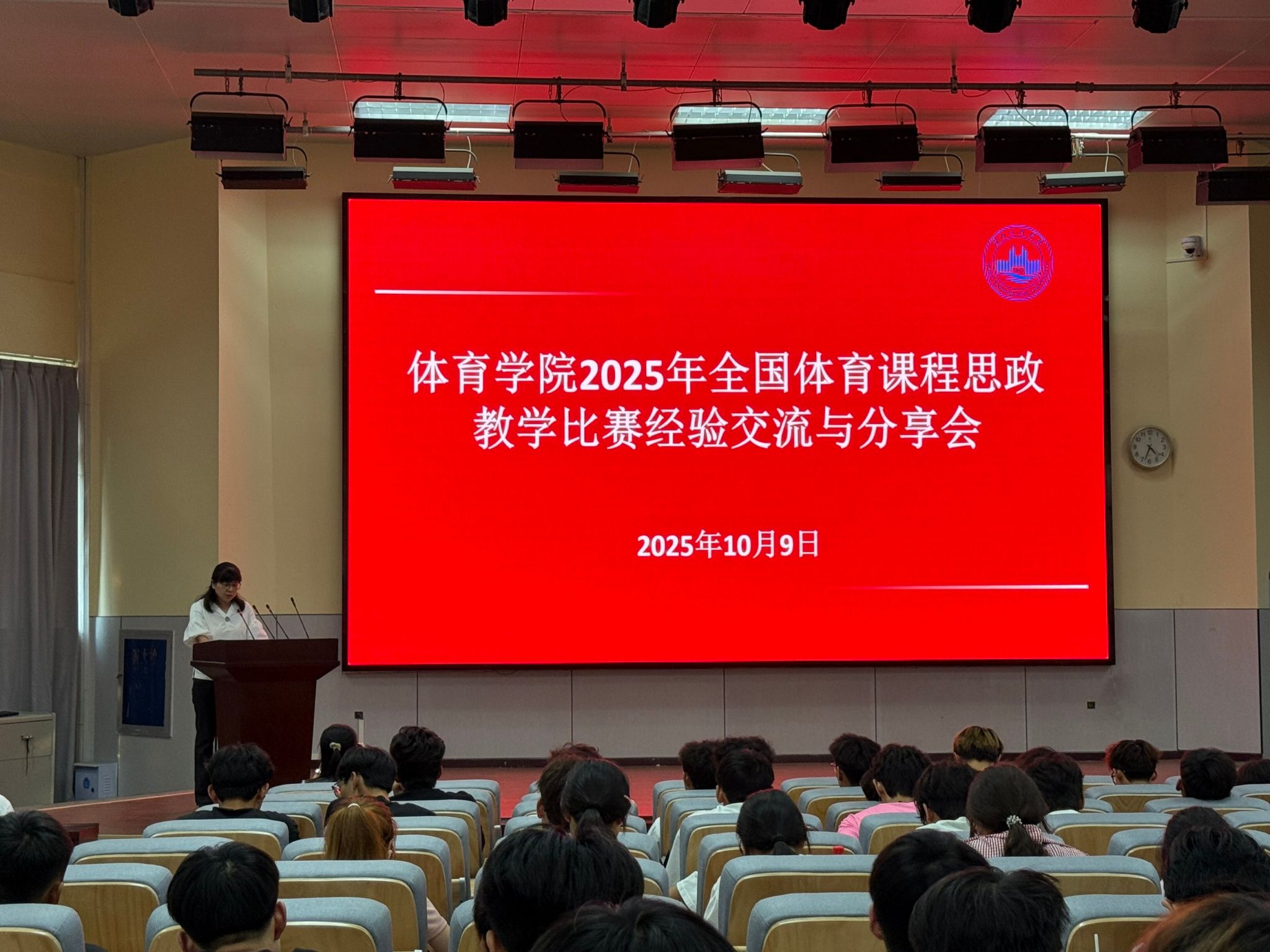 为深化学生对体育课程思政内涵的理解,推动思政元素与体育教学实践的有机融合,我院于2025年10月9日下午在举办了全国体育课程思政教学比赛经验分享会。活动邀请了在比赛中表现优异的2022级学生进行经验交流与实战展示,大一至大三全体学生积极参与,现场学习氛围浓厚。活动由张瑞老师主持。